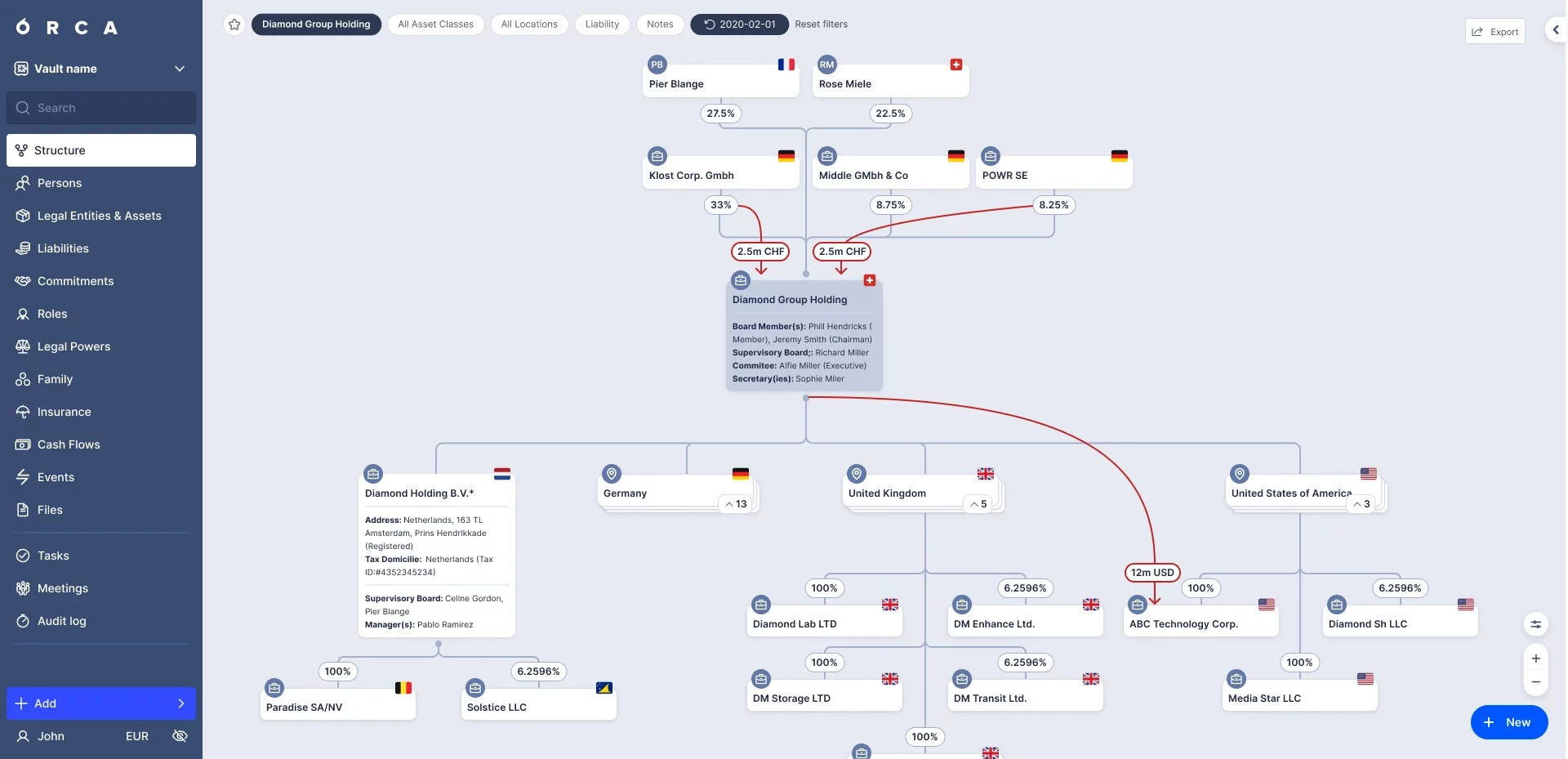 Founded in Zurich, Switzerland in 2017, ORCA’s software offers data aggregation, reporting, document management features, and more. Orca was specifically built to deal with tax, legal, and compliance obligations for anyone who manages or owns ownership structures.