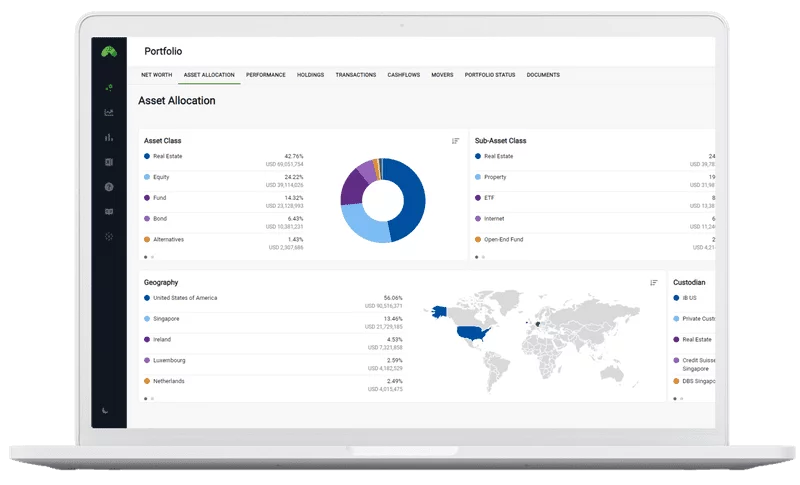 The Singapore-based company offers family offices, wealth managers, private banks, and trustees a customisable data analytics solution offering data aggregation, accounting, impact/ESG reporting, and multi-bank/asset class/currency reporting.