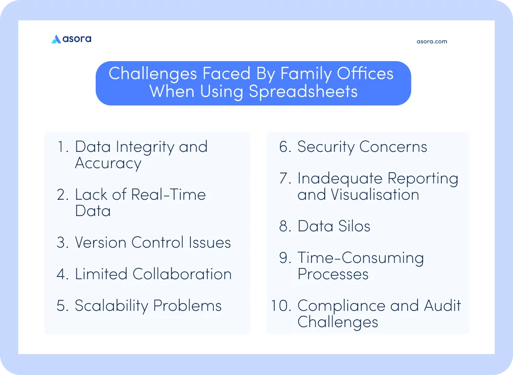 We’ve listed the top ten challenges family offices face with spreadsheets, including: