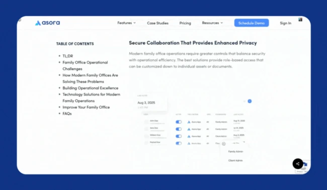 THIS WEEK'S ASORA HIGHLIGHTFamily offices today juggle complex workflows, high expectations, and risky manual processes. Asora's operations platform fills the gaps. We highlight how it helps: