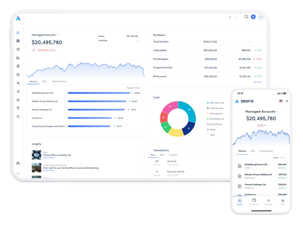 Asora is a purpose-built platform for family offices of all sizes, UHNWIs, and wealth managers. It offers automated data aggregation from banks and custodians, on-demand reporting, and a Wealth Map to visualise ownership structures. Asora replaces spreadsheets with a timely, structured, and secure reporting system, compliant with GDPR and ISO27001.