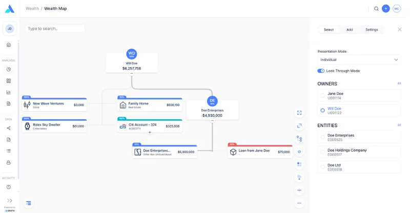 Wealth Map used to track total wealth across individuals, trusts, and companies